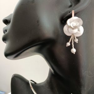 Collection “CLOUD DANCER” -Howlite – Boucles d’oreilles Fleur cuir –