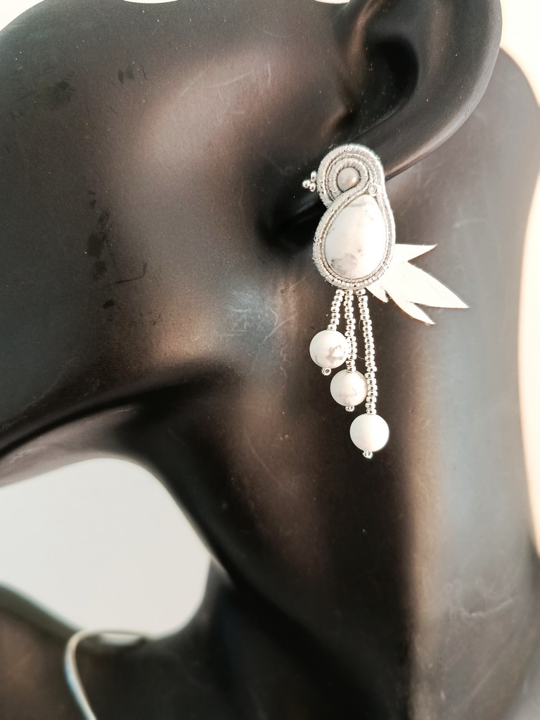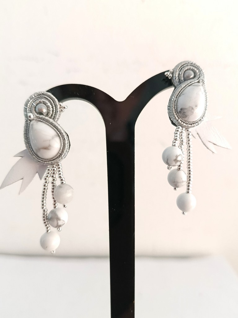 *Cabochons et perles en HOWLITE , feuilles en cuir, perles Miyuki plaqué argent, soutache.