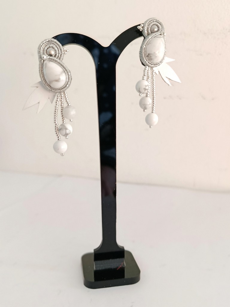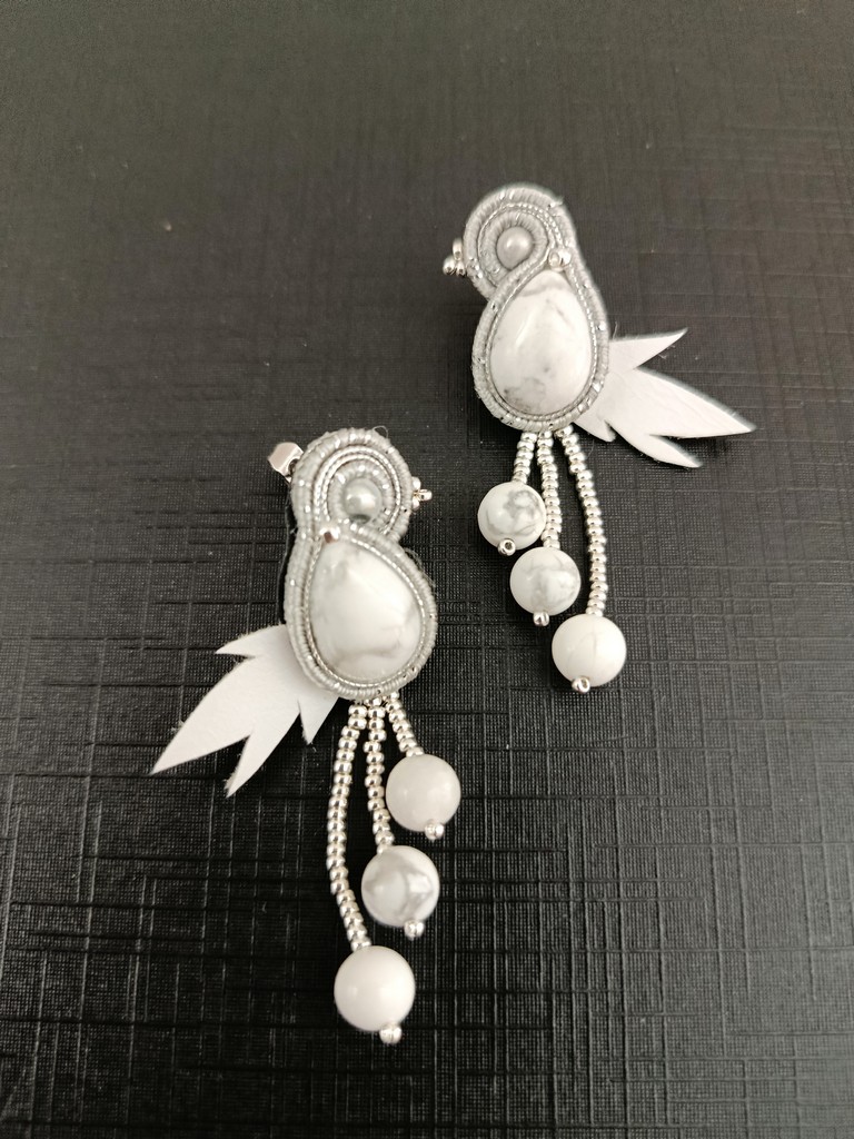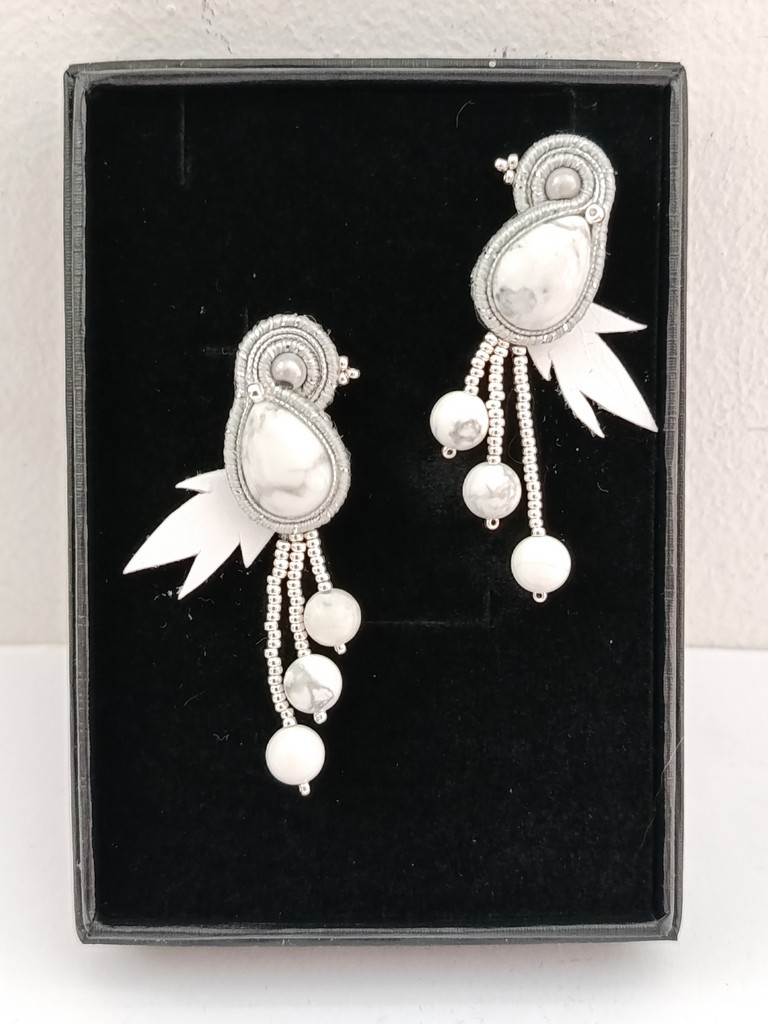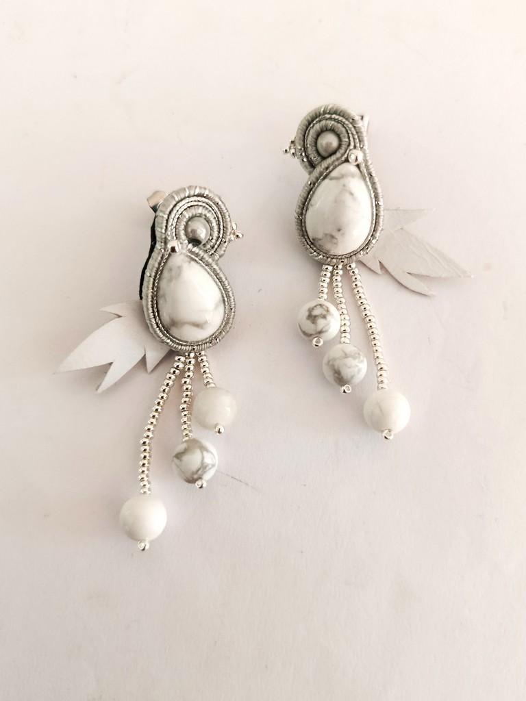 Collection “CLOUD DANCER” -Howlite – Boucles d’oreilles oiseaux –