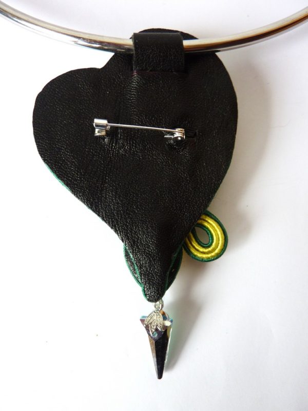 *Le tour de cou rigide est en laiton galvanisé argent (torque). Les éléments métalliques (épingle de broche) sont sans nickel, sans cadmium et sans plomb..