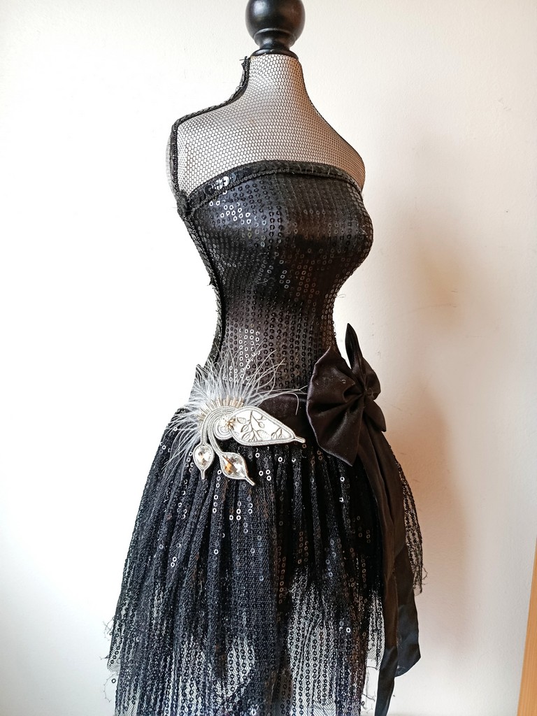 *C’est un mode de sertissage des cabochons. Ils sont collés sur de l’intissé et les bandes de soutache sont cousues à la main tout autour.