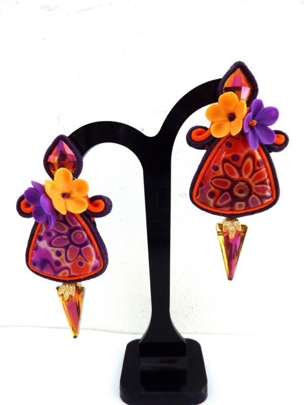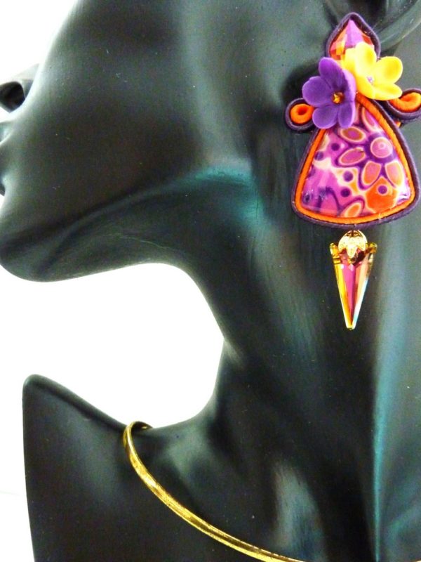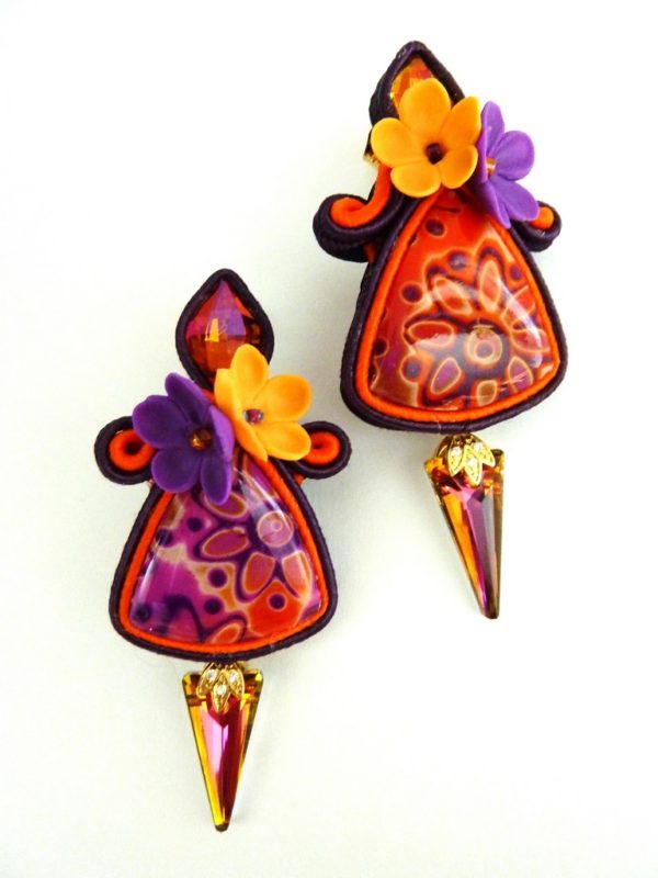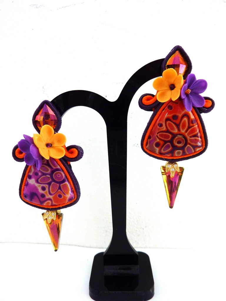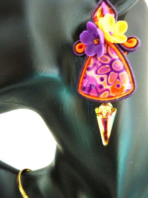 *Cabochons faits main , cristaux, verre, fleurs en porcelaines froide artisanale, soutache.