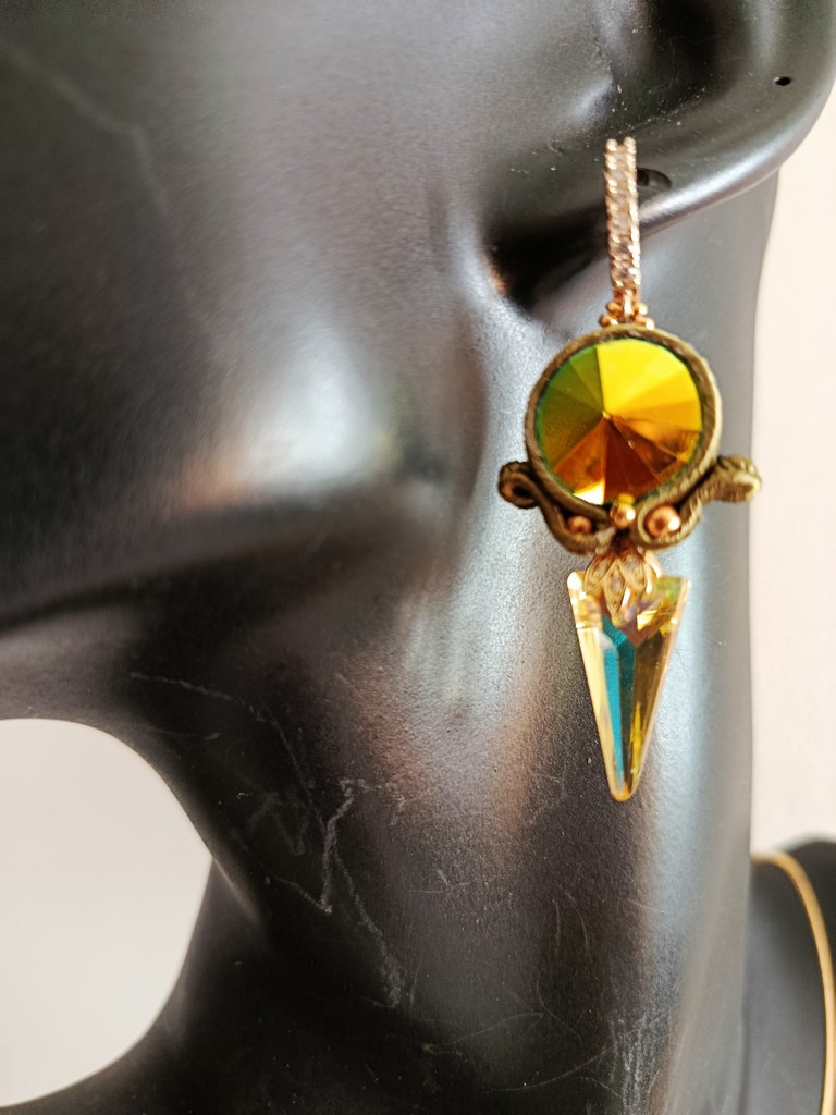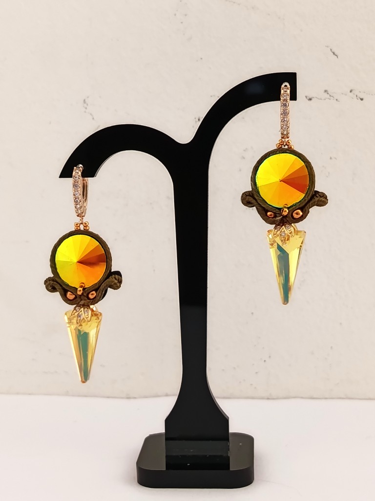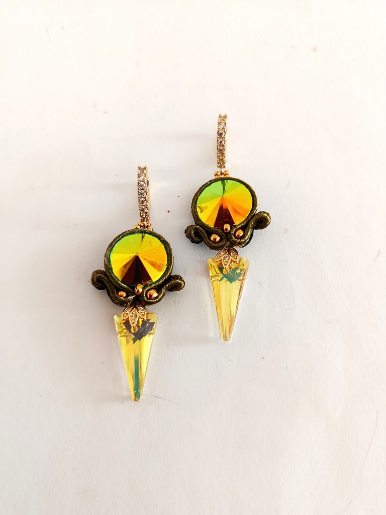 *Cabochons rivoli,  cristaux, verre, soutache.