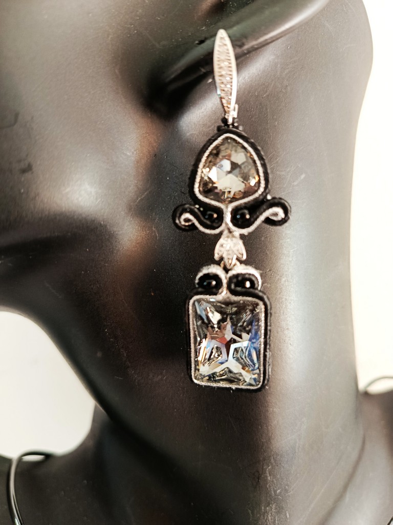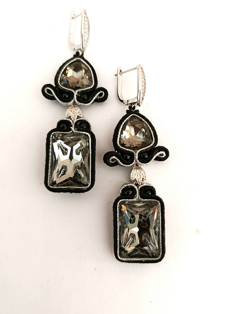 *Cabochons rectangle et triangle en cristal, soutache.
