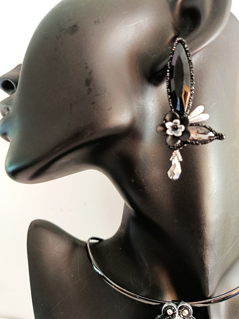 *Cabochons en cristal, verre, porcelaine froide, soutache.